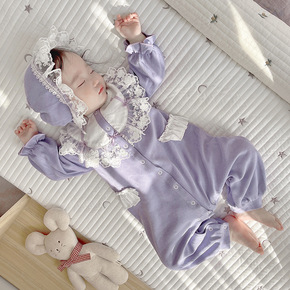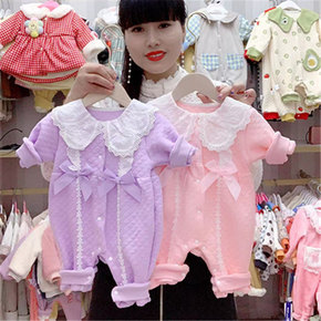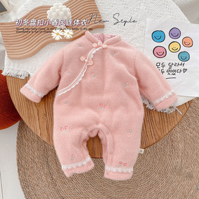 超洋气婴儿衣服秋冬包屁衣男孩女宝宝网红爬偏襟系带三...