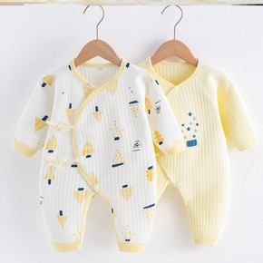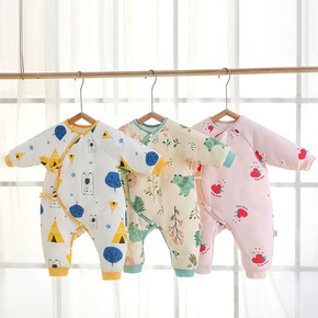 新生婴儿连体衣薄棉女宝宝卡通夹棉保暖双层外出哈衣冬...