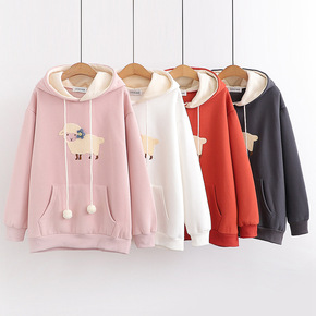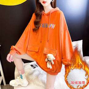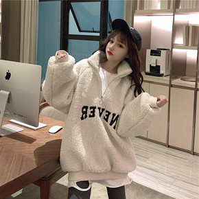 2021秋冬新款羊羔绒慵懒风卫衣女学生长袖韩版中长...