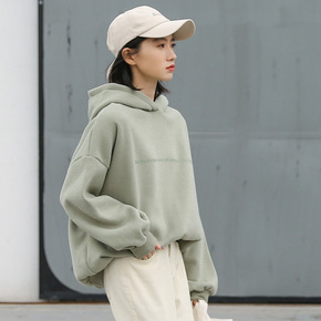 2021冬装韩版慵懒风宽松抓绒连帽卫衣女长袖休闲学...