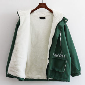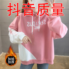 韩版秋冬加绒加厚拼接学生慵懒风卫衣港风网红学院风外...