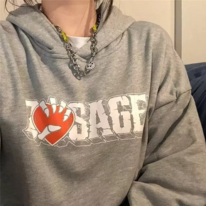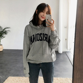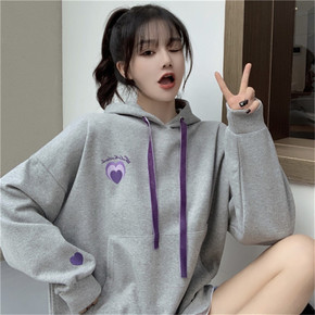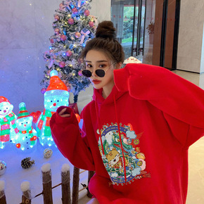 秋冬外套学生宽松班服加厚连帽印花卫衣女一件代发潮...