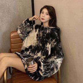 连帽扎染卫衣女2021春秋季韩版新款宽松isn学生...