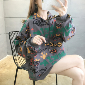 外套女学生春秋季薄款卫衣开衫宽松百搭国潮ins可爱...