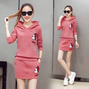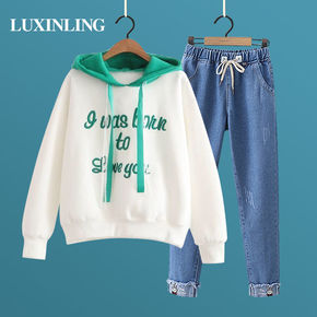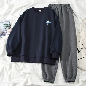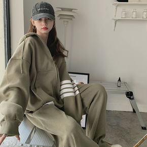 外贸爆款连帽卫衣套装女抓绒加厚学生运动服宽松刺绣两...
