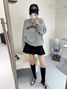 圆领卫衣女春秋薄款字母印花宽松韩版原宿风chic港...