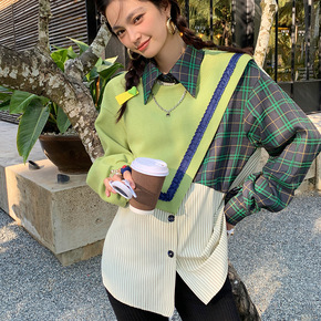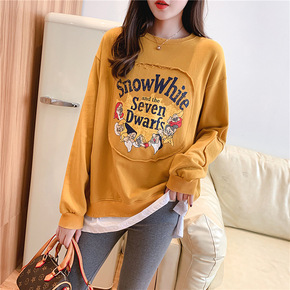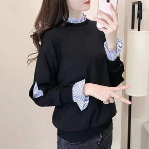 初秋卫衣女宽松大码春秋韩版百搭学生薄款假两件外套上...