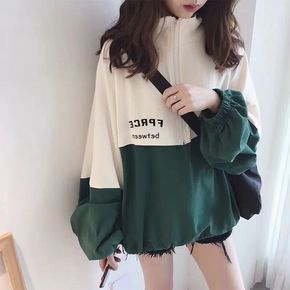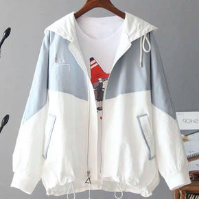 春秋装港味大码200斤宽松长袖外套女学生原宿风撞色...