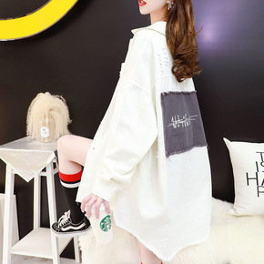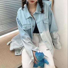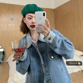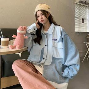 春季202新款韩版宽松百搭复古炸街拼接牛仔外套女学...