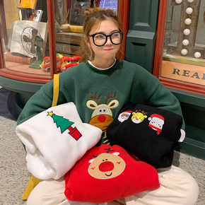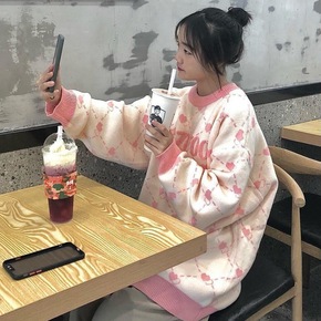 2021新款羊羔毛绒卫衣女学生宽松加厚假两件长袖外...