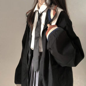 韩版纯色港风外套女学生秋季新款长袖复古BF宽松百搭...