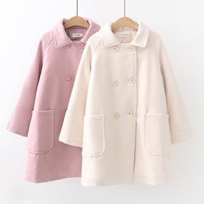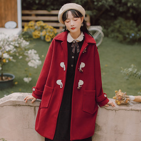 2021秋冬季新款宽松学生日系森系牛角扣加厚毛呢外...