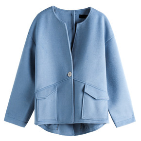 2021独立站跨境秋冬季新款呢大衣小个子宽松中长款...