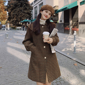 【夹棉/不夹棉】秋冬毛呢外套女灯笼袖收腰女中长款学...