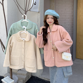 仿羊羔毛外套女2021新款韩版宽松显瘦小个子加厚短...
