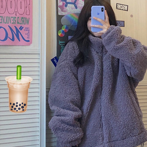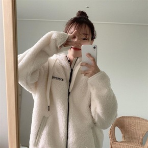 羊羔毛外套女秋冬2021新款韩版百搭学生立领卫衣宽...