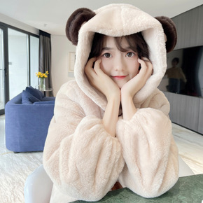 加绒加厚秋冬季百搭连帽羊羔毛外套女2021年新款韩...