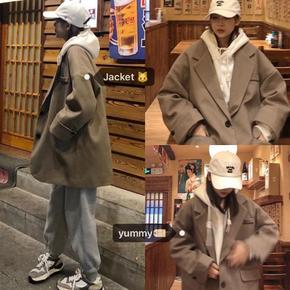 秋冬韩版2021新款呢大衣小个子宽松中长款学生百搭...
