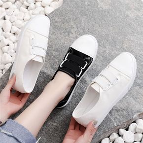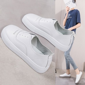 一脚蹬小白鞋女鞋新款春季百搭皮面平底休闲单鞋子女学...