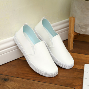 小白鞋软底软皮工作鞋女厚底小皮鞋白色护士鞋春秋平底...