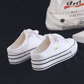 半拖小雏菊帆布鞋女2020夏季新款学生韩版一脚蹬懒...