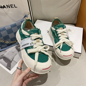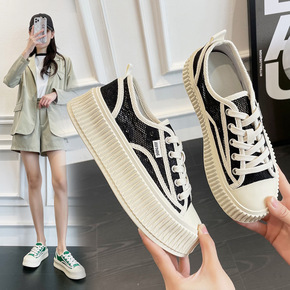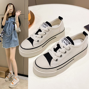 厚底饼干鞋2022新款女鞋春季帆布鞋小香风板鞋松糕...