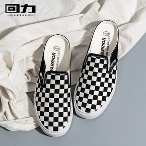 2022春季新款回力女鞋半托帆布鞋棋盘格鞋子情侣款...
