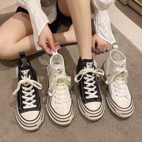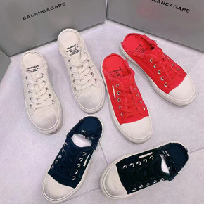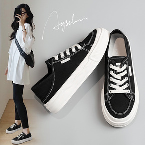 春夏新款学生帆布鞋女时尚系带板鞋开口小白鞋凉鞋半拖...