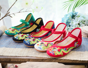 【画龙】中国风复古刺绣龙纹浅口盘扣低跟帆布绣花布鞋...