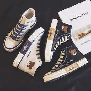 2021春季新款韩版高帮帆布鞋女小熊鞋学生潮鞋休闲...