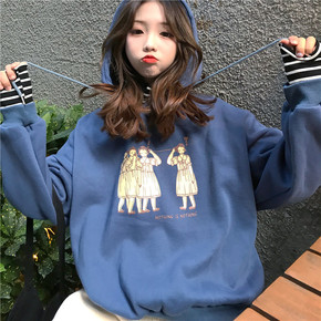 秋冬19季新款连帽卫衣女韩版学生宽松加绒套头ins...