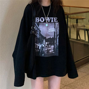 ins超火美式潮牌长袖T恤女2021春秋新款百搭打...