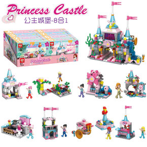 跨境热卖兼容乐高拼装积木8合1女孩公主城堡diy模...