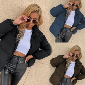 52126#亚马逊欧美跨境时尚棉服外套女装 休闲连...