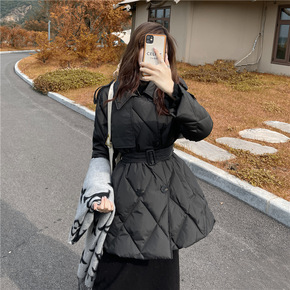 羽绒服女中长款小个子收腰显瘦小香风菱形格设计感小众...