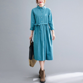 棉麻长袖连衣裙女2022春季新款时尚减龄娃娃领纯色...