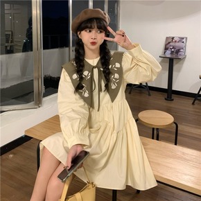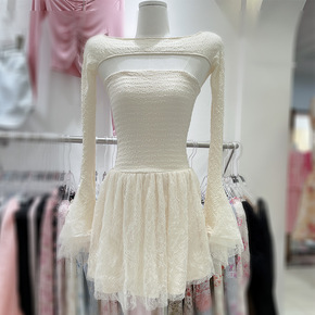 2022早春新款甜美穿搭蕾丝拼接连衣裙蓬蓬短裙长袖...