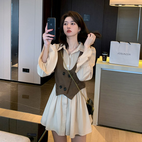 衬衫裙子女装春装2022年新款独特设计感马甲连衣裙...