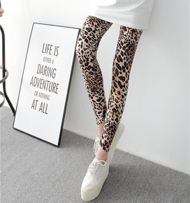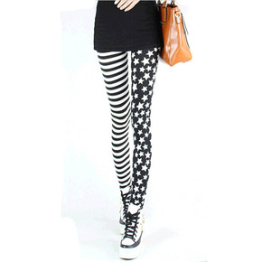 外贸秋季横条纹星星拼接打底裤女显瘦弹力印花薄款九分...