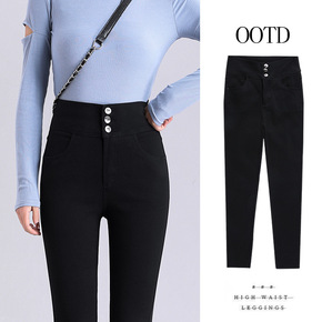 小脚裤女款春秋女式外穿打底裤女高腰显瘦九分裤紧身铅...