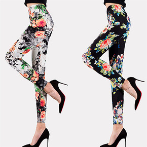 Ebay亚马逊向日葵数码印花修身高腰运动瑜伽裤打底...