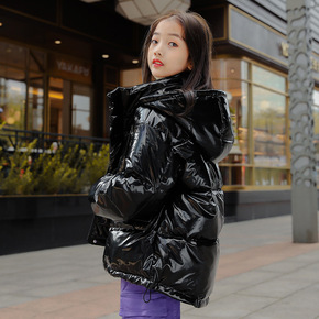 女童中长款羽绒棉服三防韩版亮面宝宝冬装2021新款...