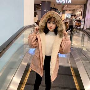 女童冬装加绒棉衣派克服外套2021韩版新款网红中大...