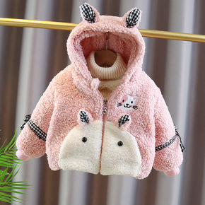 冬季女童加绒加厚外套 2021韩版新款卡通连帽小童...