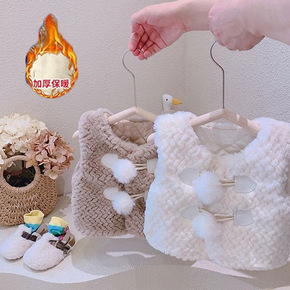 女童洋气加厚背心2021新款秋冬装女宝宝毛毛夹棉马...