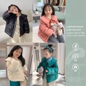 女童洋气羽绒棉服2022冬装新款宝宝加厚纯色洋气女...