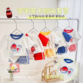 网红莱卡棉宝宝短袖套装男女童夏季装婴儿短袖短裤两件...