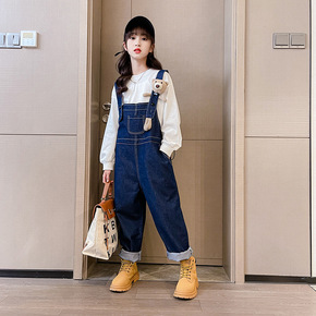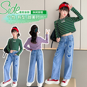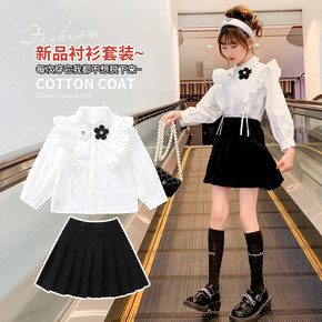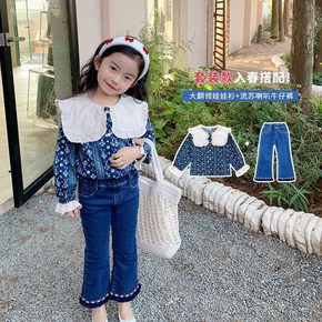 女童秋款套装2022新款复古长袖衬衫喇叭裤洋气时髦...