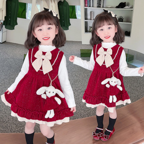 2022春季衣服女童连衣裙打底裤两件套儿童长袖长裤...
