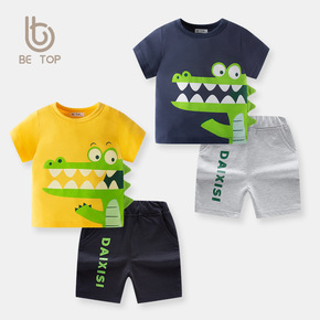 童装夏季2022新款韩版夏装立体卡通恐龙男童套装儿...